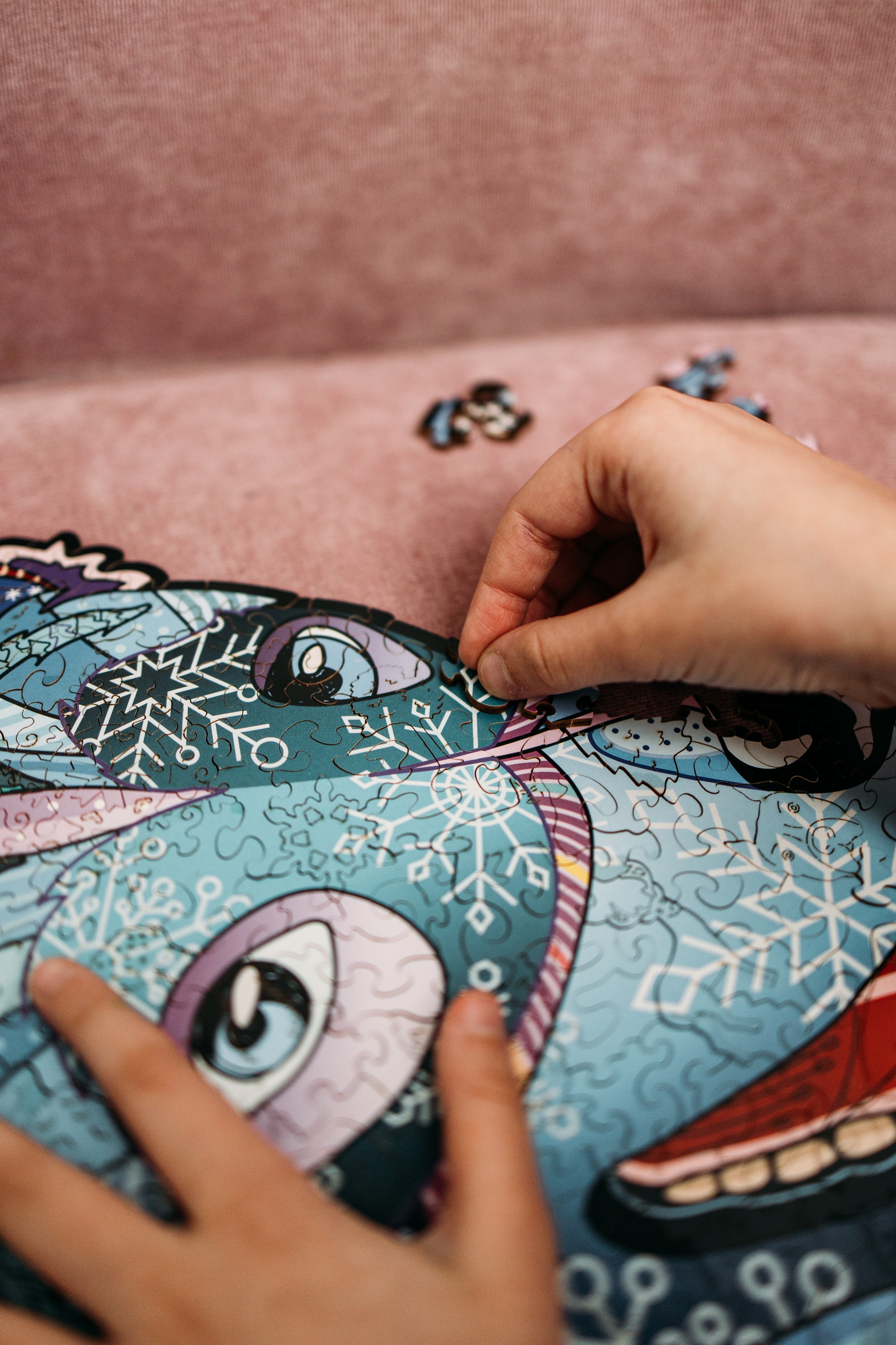 Brave Husky este un puzzle din lemn plin de farmec, decorat cu teme de iarnă și realizat cu o atenție deosebită la detalii!