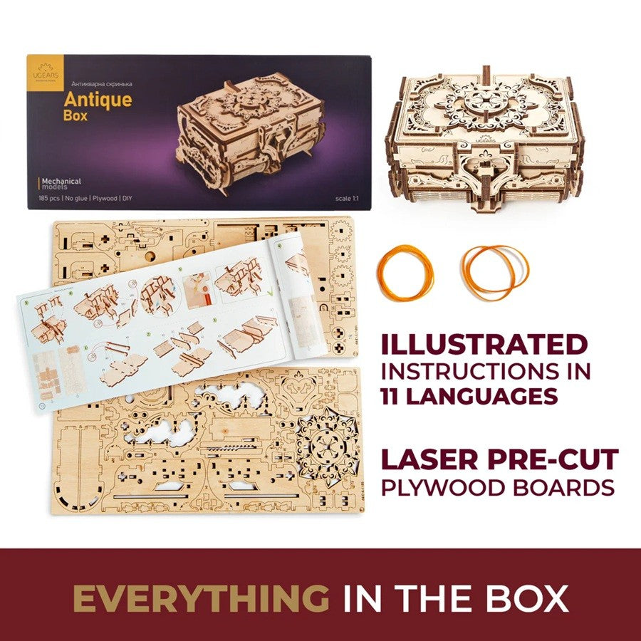 Puzzle 3D, Antique Box, Ugears, lemn, 185 piese