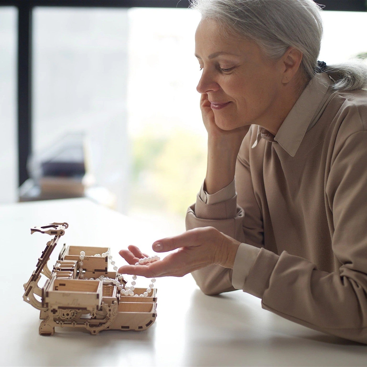 Modelul este realizat din piese din lemn predecupate cu laser și se asamblează fără lipici și fără unelte, fiind potrivit pentru cei care apreciază proiectele creative, mecanismele inteligente și obiectele decorative cu funcție reală. După asamblare, Antique Box devine un cadou excelent pentru iubitorii de puzzle-uri 3D, hobby-uri DIY și accesorii elegante pentru casă sau birou.