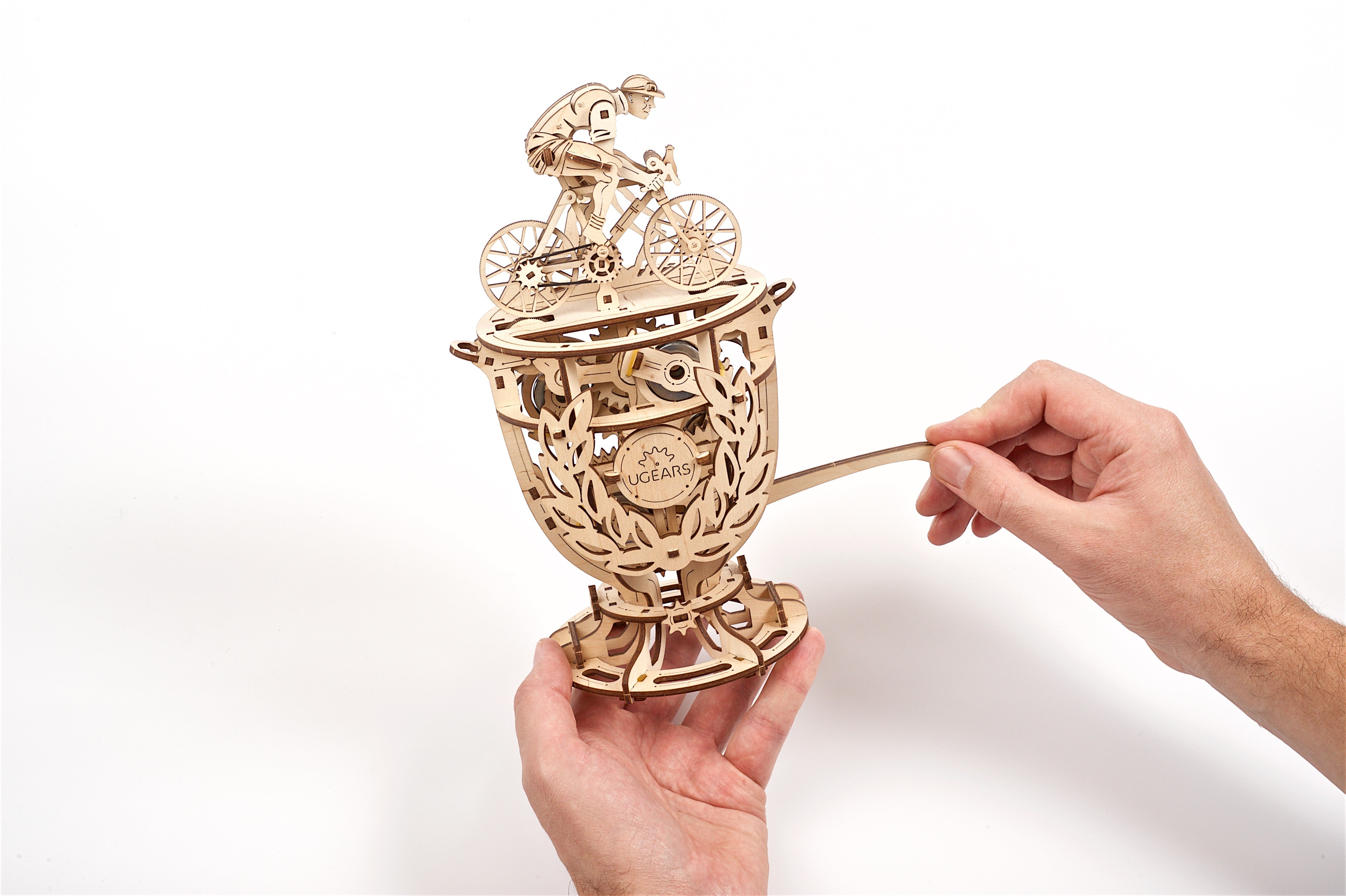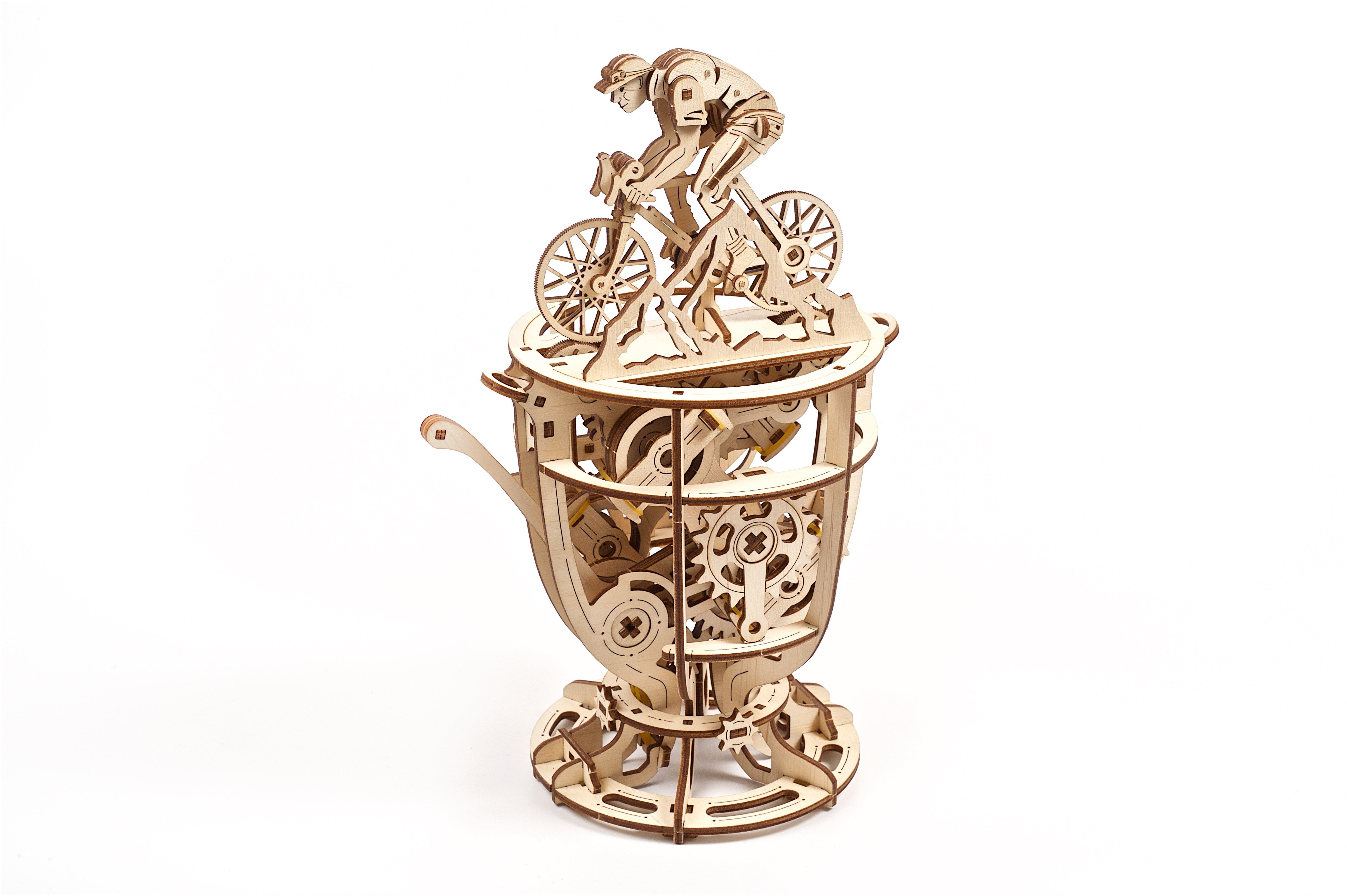 Inspirat de atmosfera legendară a curselor de tip Tour de France, Automaton Cyclist este mai mult decât un simplu puzzle: este o piesă mecanică de colecție care aduce dinamism și personalitate oricărui birou sau spațiu de expunere. Modelul este realizat din piese din lemn predecupate cu laser, care se asamblează precis fără lipici și fără unelte, oferind o experiență de construcție plăcută și accesibilă. De asemenea, poate fi personalizat prin vopsire sau decorare, pentru un rezultat final cu adevărat unic.