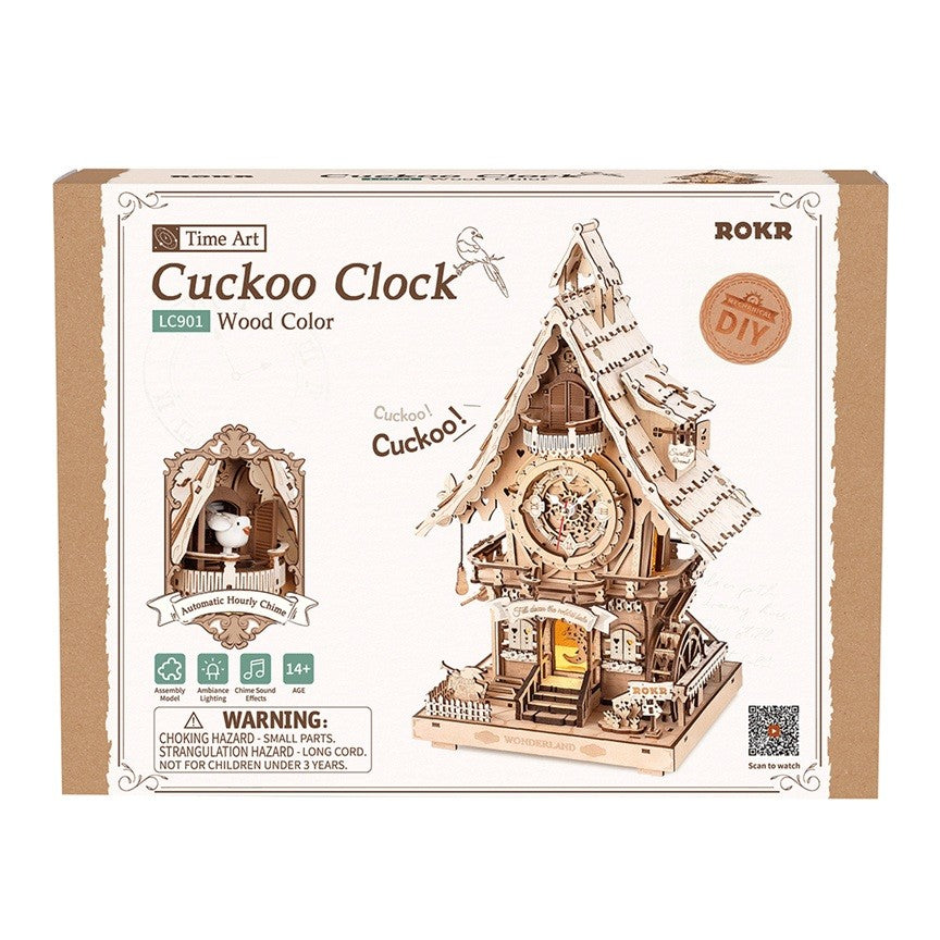 Puzzle 3D Ceasul Cuc natural, ROKR, Lemn, 435 piese