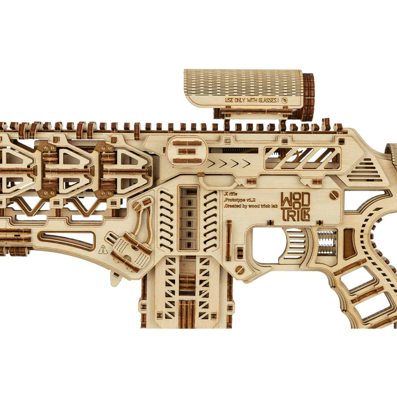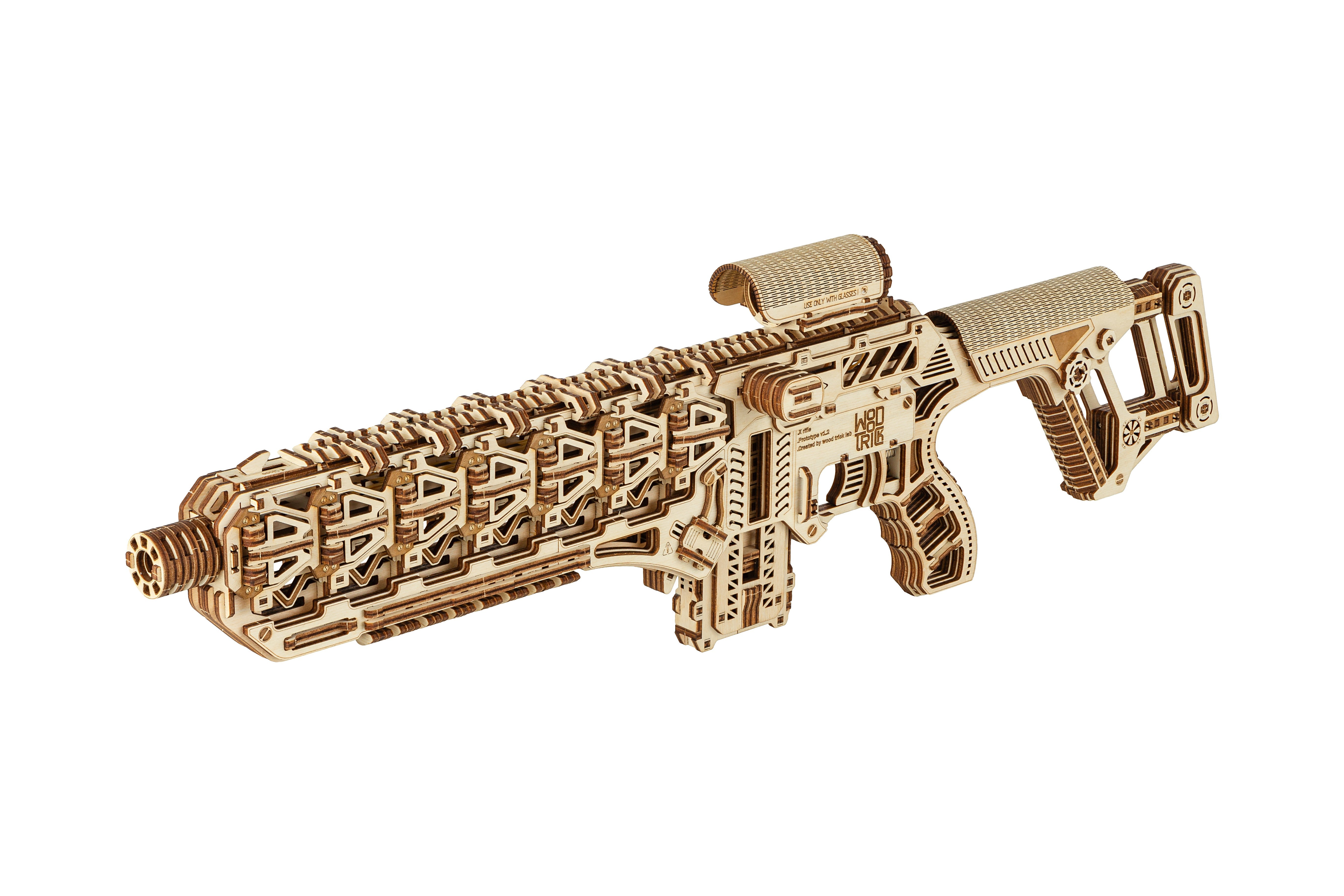Fusion X Rifle este un puzzle 3D mecanic din lemn, realizat cu precizie de WoodTrick.