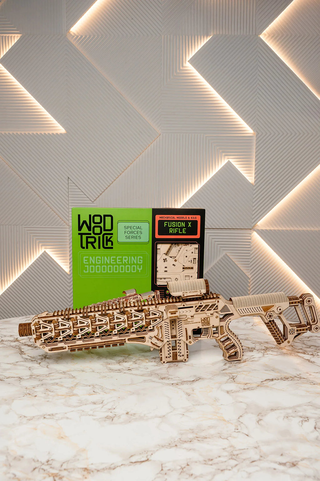Fusion X Rifle îți oferă precizia, designul și satisfacția unei construcții remarcabile — din lemn, pentru minte și mâini deopotrivă.