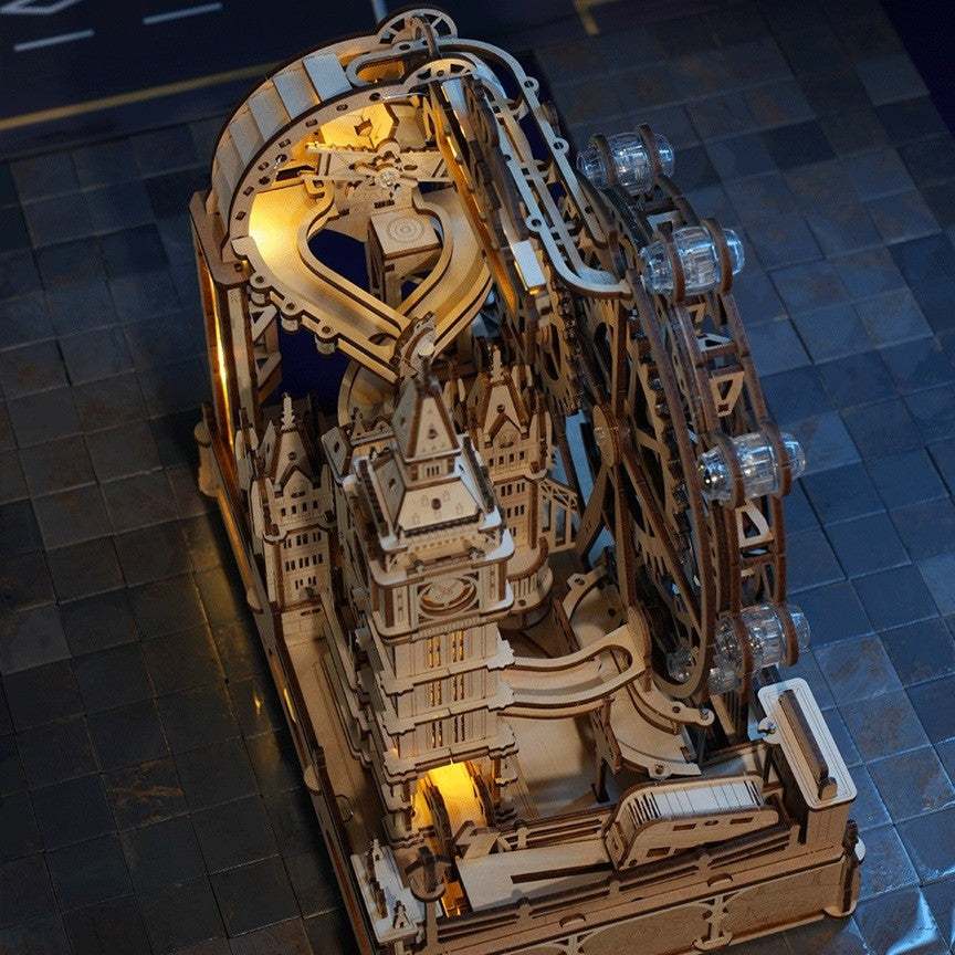 Un puzzle mecanic 3D din lemn – „London Tour Marble Run”