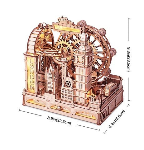 Tip produs: Puzzle mecanic 3D din lemn – traseu cu bile tematizat Londra