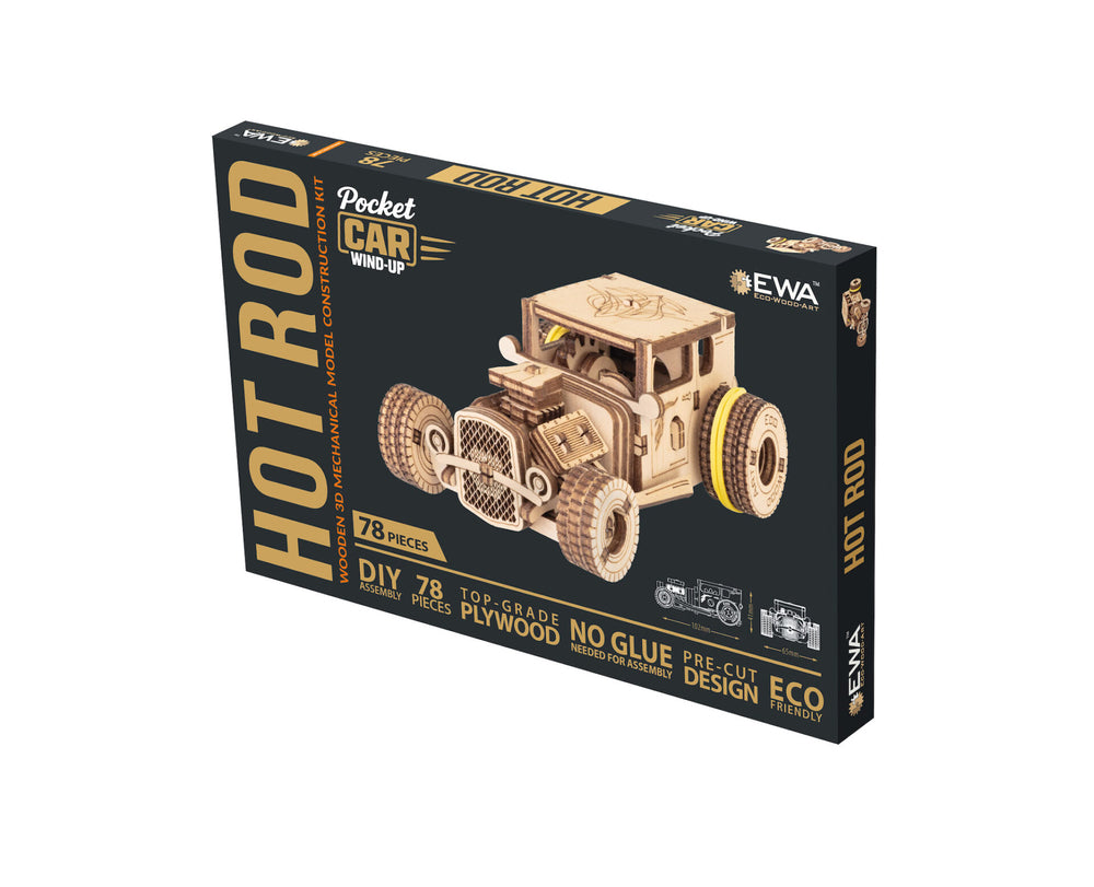 Puzzle 3D, Mini Hot Rod, EWA, lemn, 78 piese