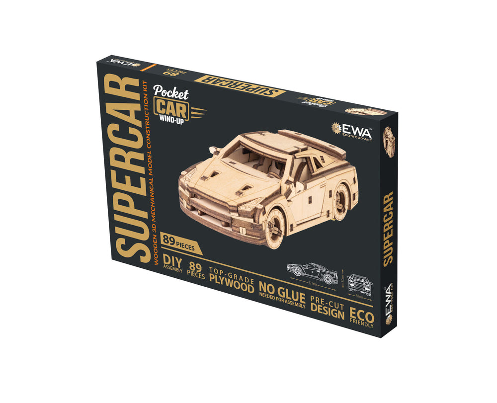 Puzzle 3D, Mini Supercar, EWA, lemn, 89 piese