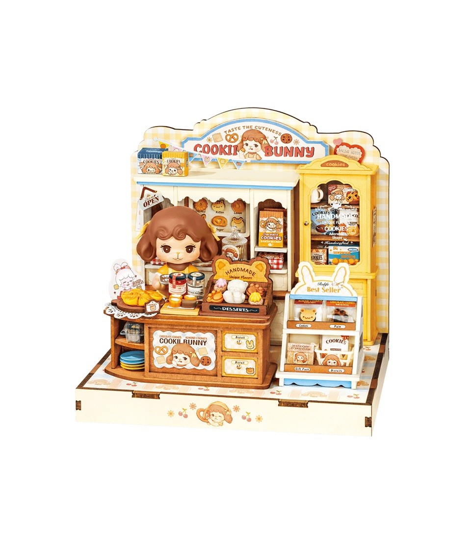 Bunny’s Cookie Shop este o mini-căsuță DIY cu atmosferă de cofetărie, gândită pentru cei care iubesc detaliile fine și proiectele care „prind viață” în timp. Asamblarea creează o scenă compactă, plină de elemente decorative, perfectă pentru expunere pe raft, birou sau în vitrina de colecție. Este un proiect care antrenează răbdarea și atenția la detalii, oferind o experiență creativă completă și un rezultat final foarte „instagramabil”.