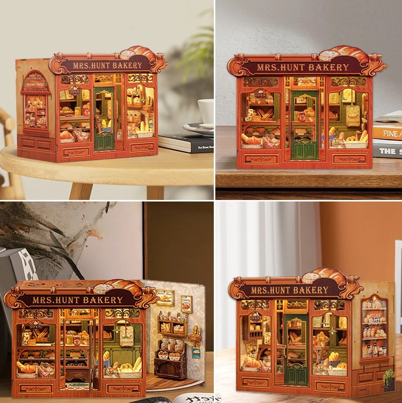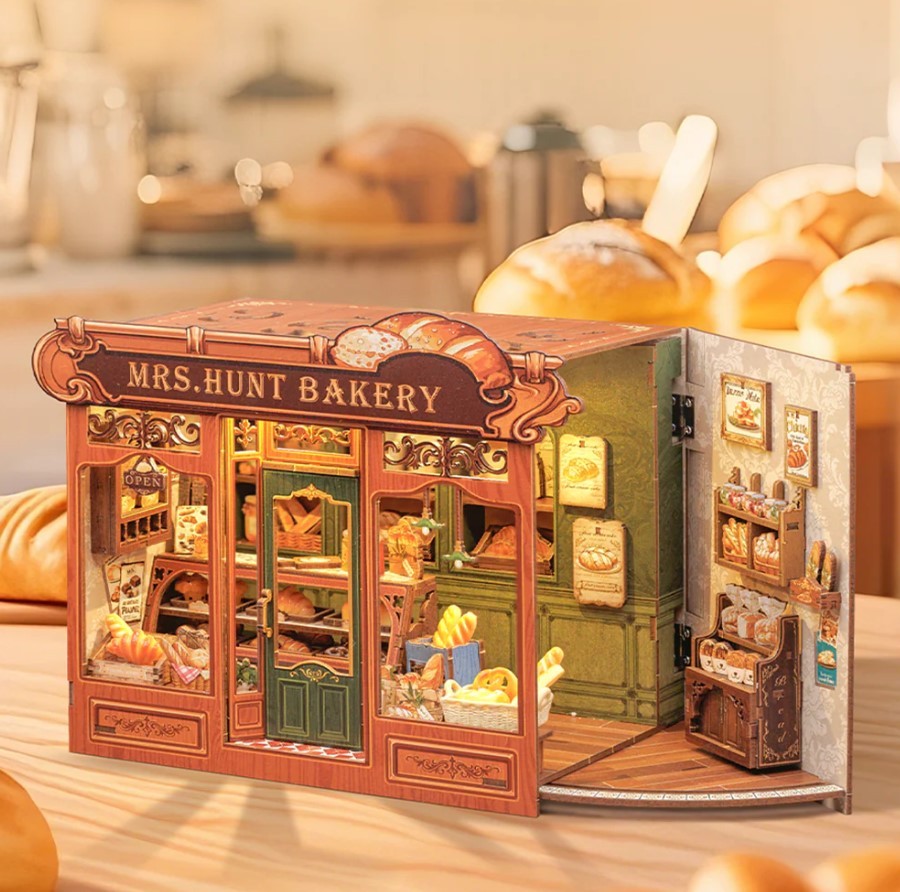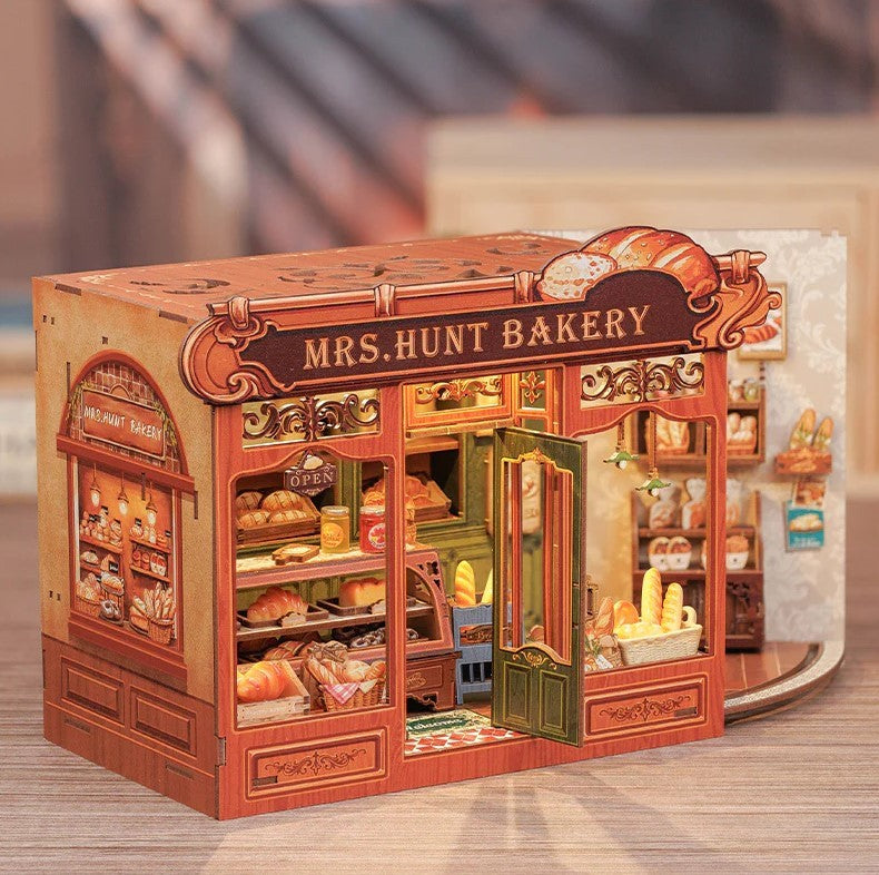 Brutaria Doamnei Hunt surprinde farmecul unei brutării clasice, pline de căldură și miresme îmbietoare. Cu pereți vintage, vitrine luminoase și detalii nostalgice, această miniatură recreează atmosfera unei brutării din alte vremuri, unde pâinea proaspătă și prăjiturile de casă aduc zâmbete pe chipurile tuturor. Cu 216 piese și un timp de asamblare de 4–6 ore, proiectul este ideal pentru pasionații de bricolaj, colecționari și iubitorii de estetici retro.