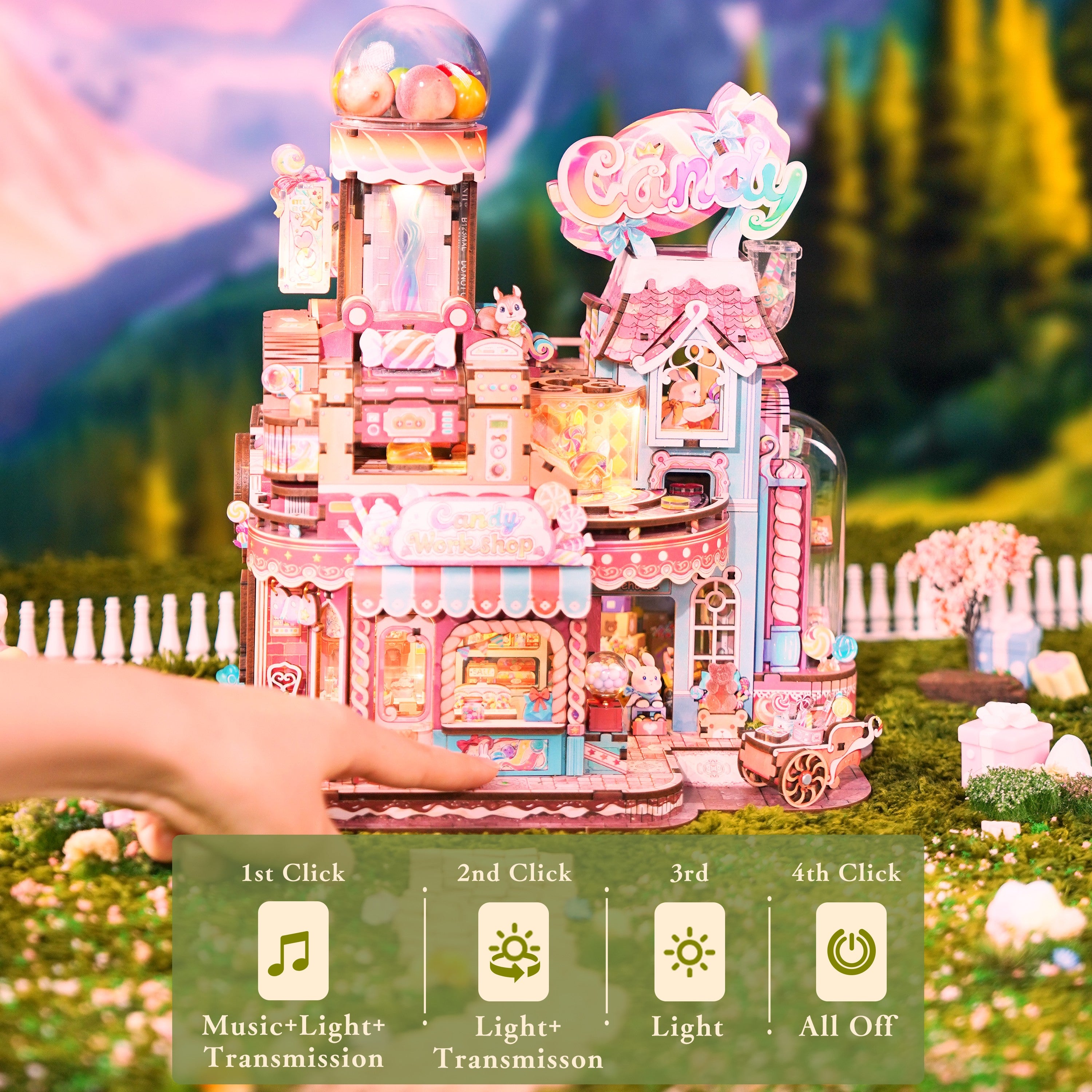Tonecheer Candy Workshop este un model DIY cu transmisie mecanică ce transformă lumea dulciurilor într-un spectacol miniatural plin de mișcare, fantezie și detalii jucăușe. Conceput ca un atelier de bomboane desprins dintr-o poveste, acest kit este perfect pentru cei care iubesc modelele interactive, mecanismele vizibile și decorurile imaginative cu personalitate puternică.