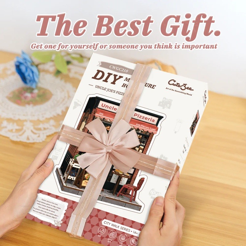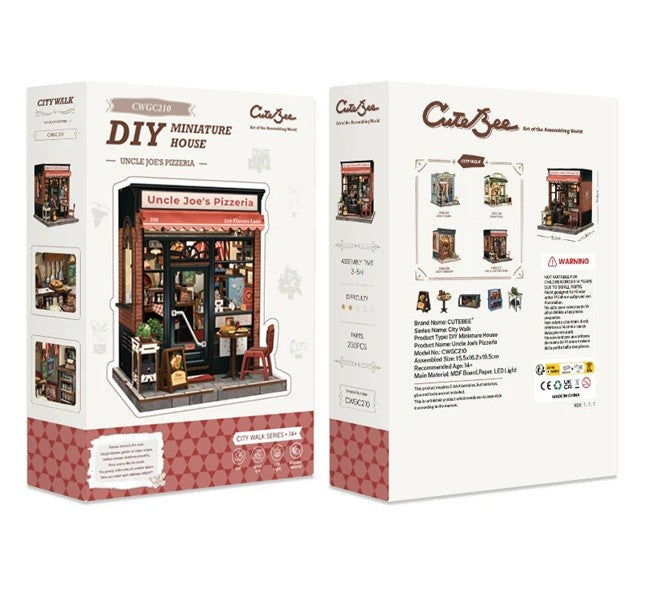 Ascunsă într-un colț liniștit al orașului, Uncle Joe’s Pizzeria atrage oamenii prin farmecul său cozy și promisiunea unei pizza făcute cu dragoste. Uncle Joe și-a învățat meseria într-un mic sat din Italia, iar când s-a întors acasă a deschis această pizzerie cu o filozofie simplă: „Pizza ar trebui să se simtă ca acasă.” Fiecare blat este întins manual, fiecare ingredient este proaspăt, iar fiecare colțișor al pizzeriei spune o poveste — de la pereții din cărămidă roșie, la fețele de masă în carouri și luminile calde. Acest kit DIY în miniatură surprinde cu fidelitate tot farmecul pizzeriei sale îndrăgite.