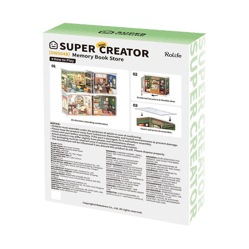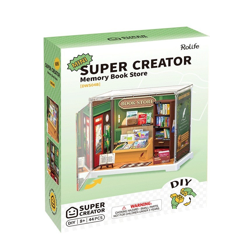 Memory Book Store reunește aceste elemente – o mărturie a geniului uman neatins de influențe generate de computer. Poate că noi suntem ultima generație care își mai amintește puritatea acestor idei, așa că sărbătorește-le cu acest kit nostalgic de la Rolife. Plin de cărți de artă și rafturi de lemn, acest DIY Miniature House este o piesă de colecție spectaculoasă, care va atrage toate privirile.