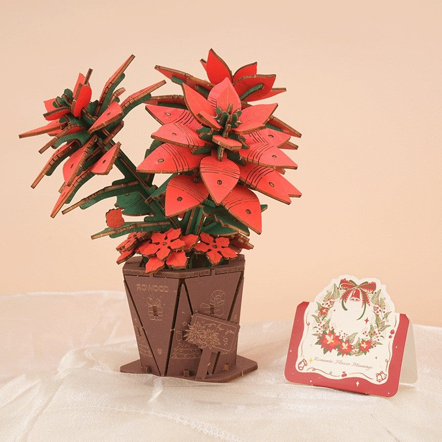 Puzzle 3D, Poinsettia, Lemn, ROWOOD, 153 piese