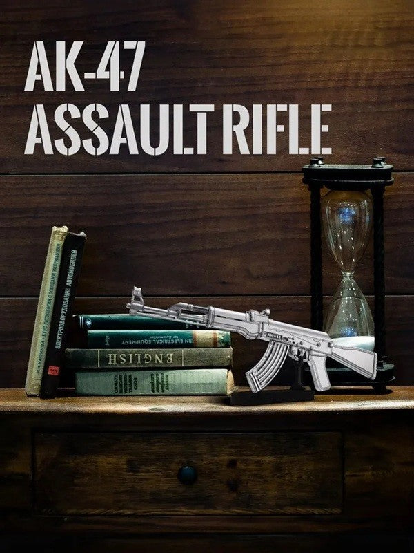 Modelul final AK47 impresionează prin fidelitatea detaliilor și finisajul metalic lucios. Este ideal ca piesă decorativă pentru birou, bibliotecă sau cameră de hobby.