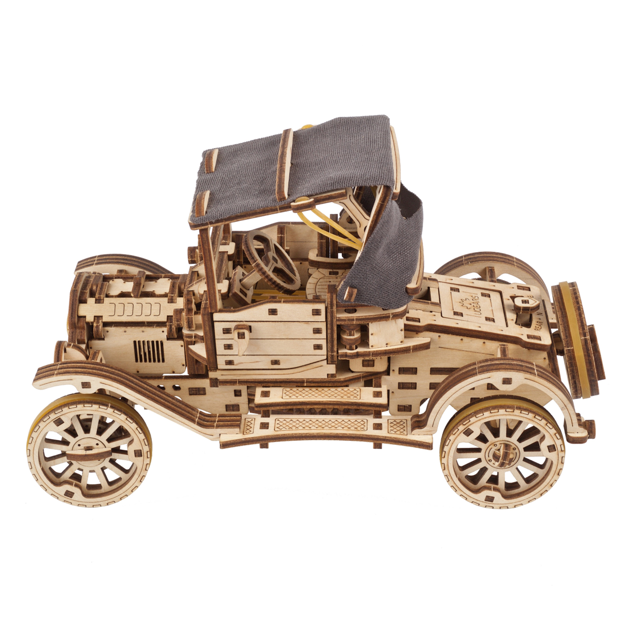 Piesele sunt predecupate cu laser și se asamblează fără lipici și fără unelte speciale. Modelul poate fi păstrat în culoarea naturală a lemnului sau poate fi vopsit ori baituit, pentru un aspect și mai personalizat. Datorită construcției sale elaborate și aspectului clasic, Retro Car UGR-T este o alegere excelentă pentru adolescenți și adulți care caută un proiect DIY elegant, interactiv și memorabil.
