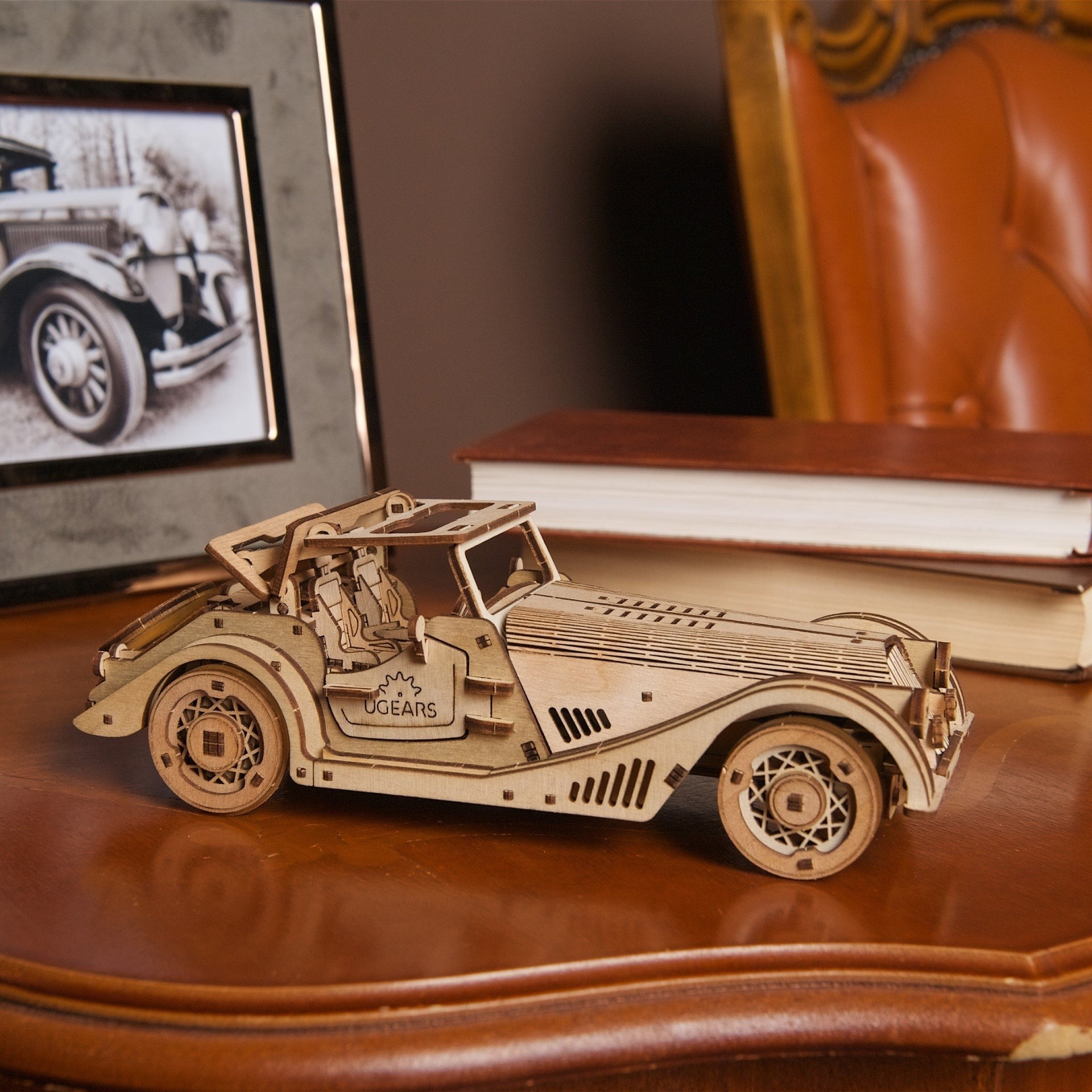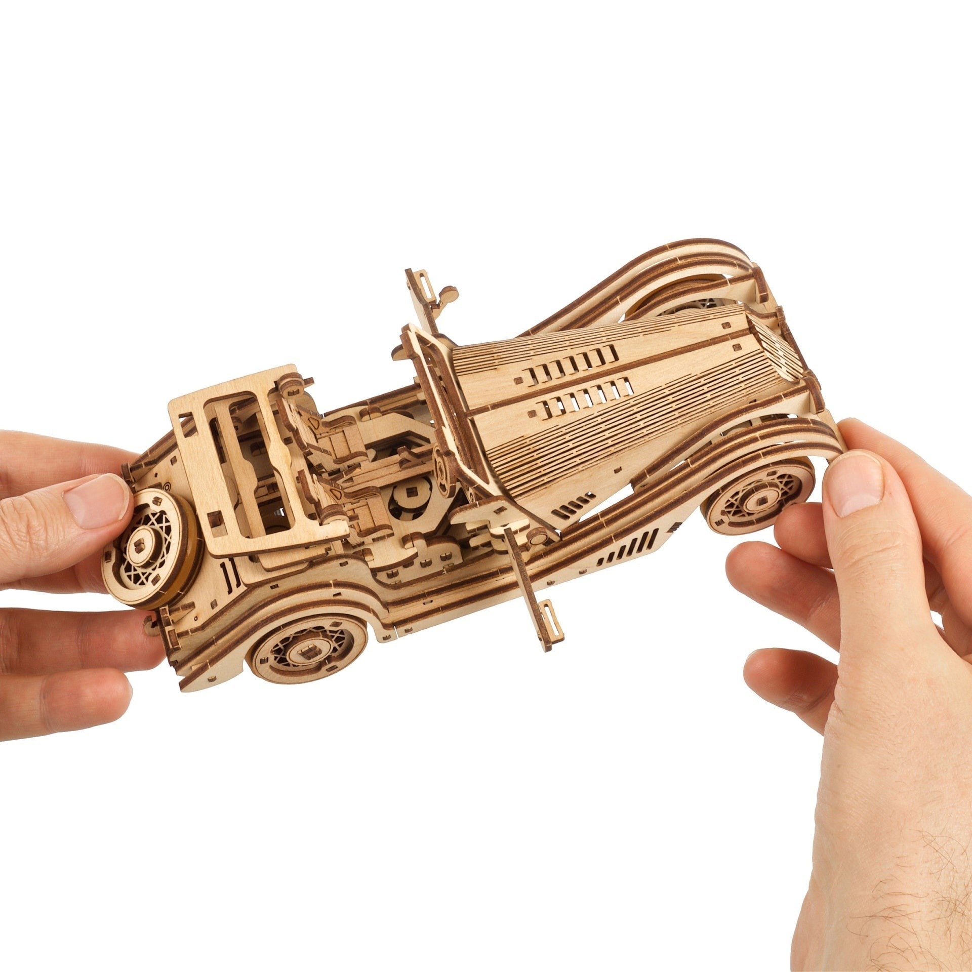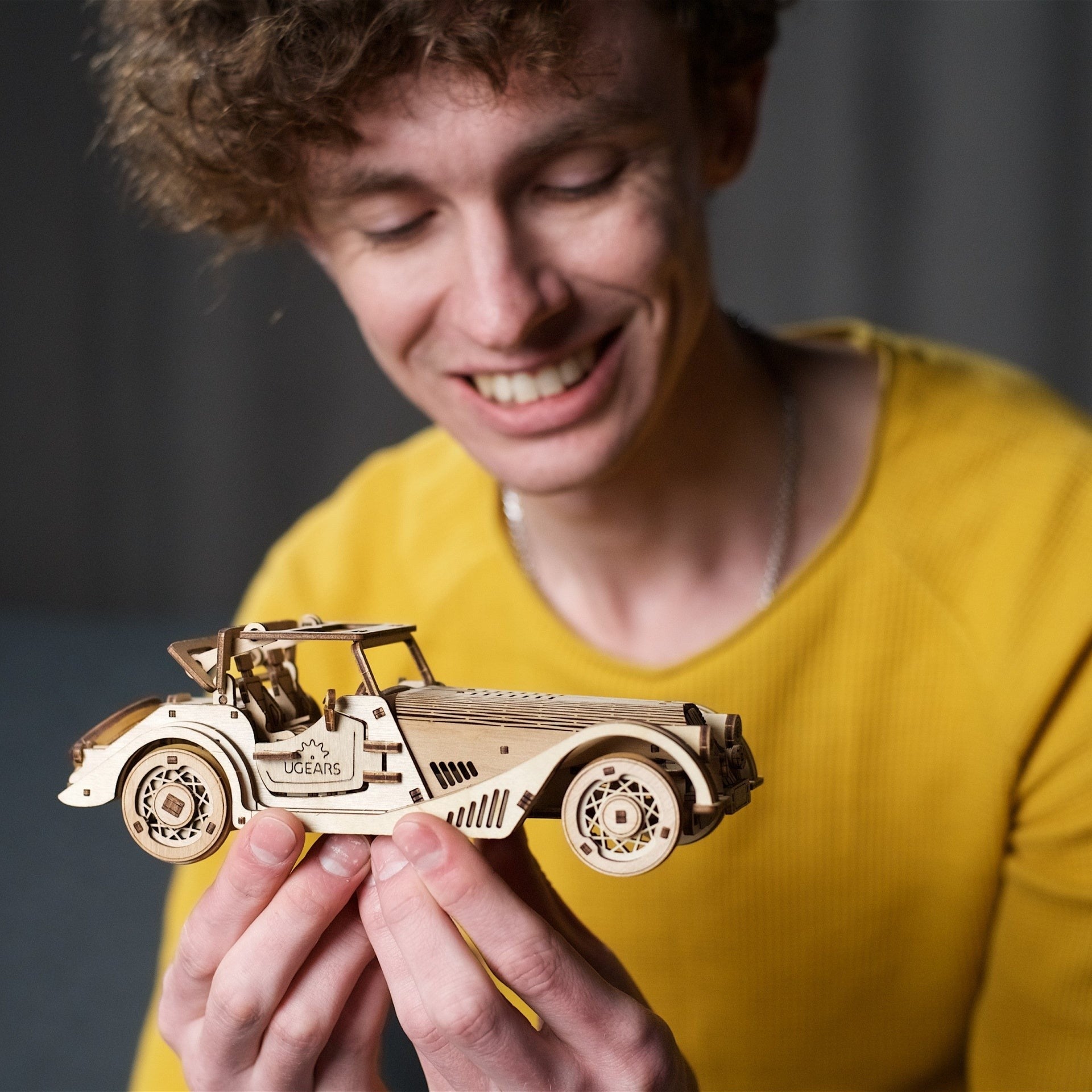 Adaugă în colecția ta farmecul automobilelor sport clasice cu Sports Car Rapid Mouse de la Ugears, un model 3D din lemn inspirat de roadsterele de la mijlocul secolului XX. Cu design elegant, proporții realiste și o prezență vizuală plină de energie, acest puzzle este ideal pentru pasionații de automobile, proiecte DIY și modele decorative cu personalitate.