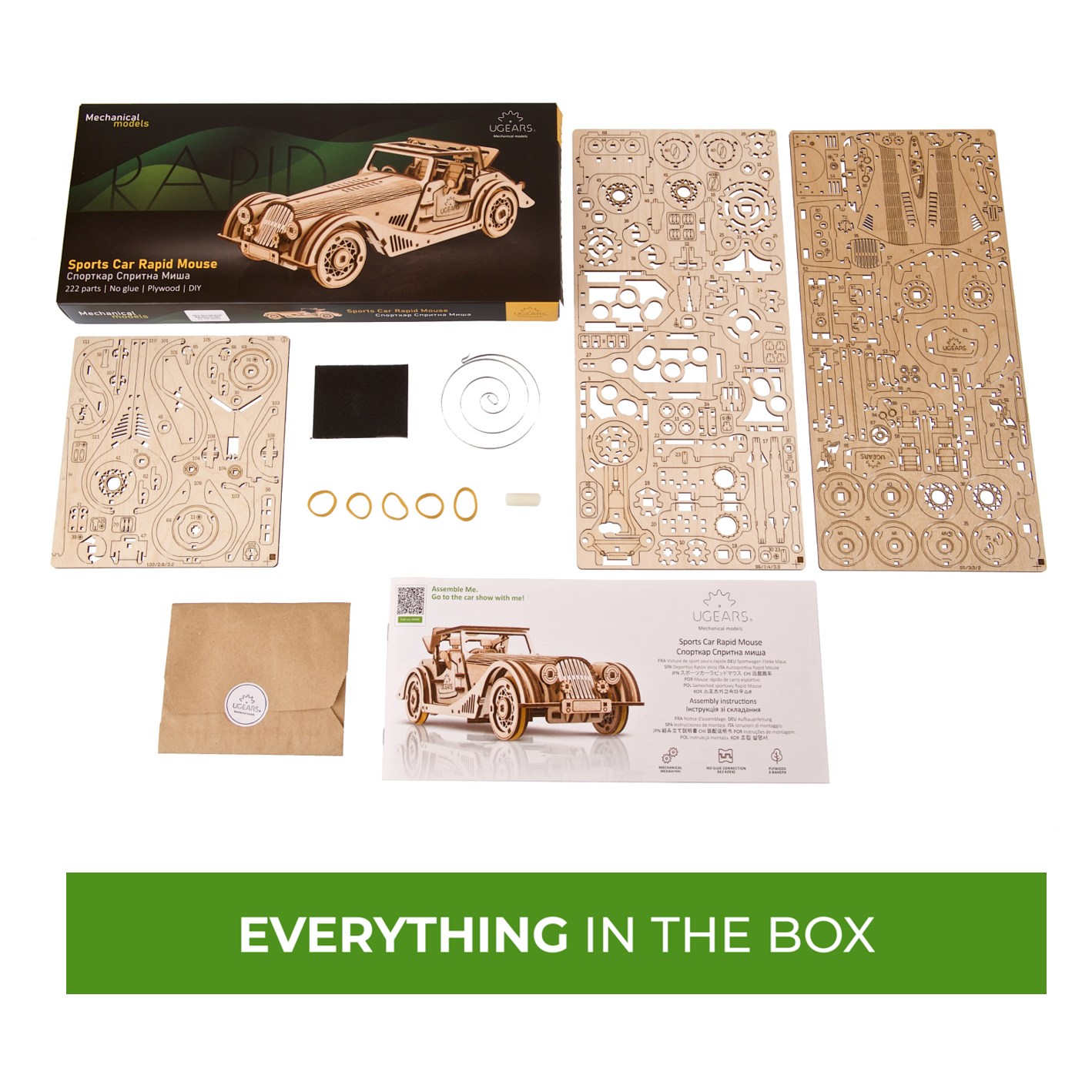 Puzzle 3D, Sports Car Rapid Mouse, Ugears, lemn, 222 piese
