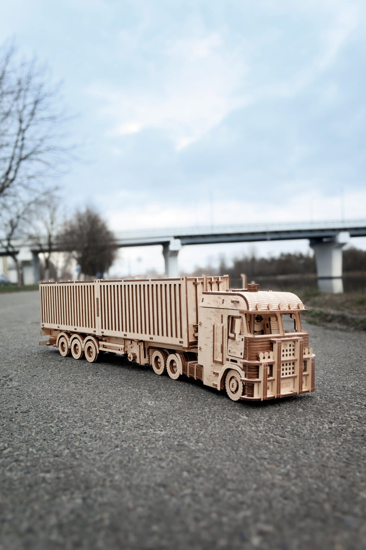 Puzzle 3D, Trailer pentru Camionul Road King (container), EWA, lemn, 238 piese
