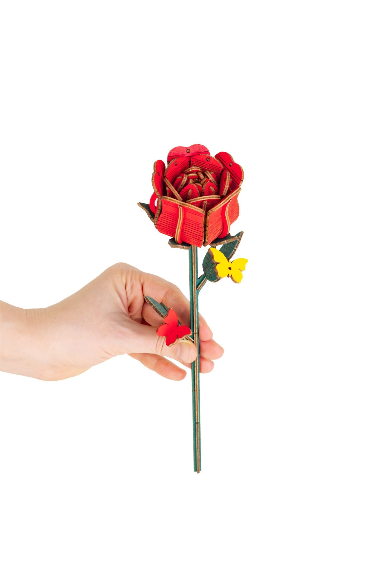 Puzzle 3D, Trandafirul Rosu, EWA, lemn, 80 piese
