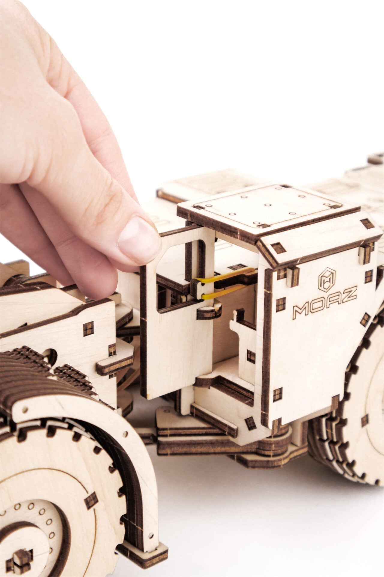 Porneşte într-o experienţă captivantă cu acest model mecanic din lemn, care recreează vehiculul de transport şi manipulare MOAZ-4075 – perfect pentru pasionați de mecanisme, colecționari sau pentru cei care iubesc să construiască ceva cu propriile mâini.