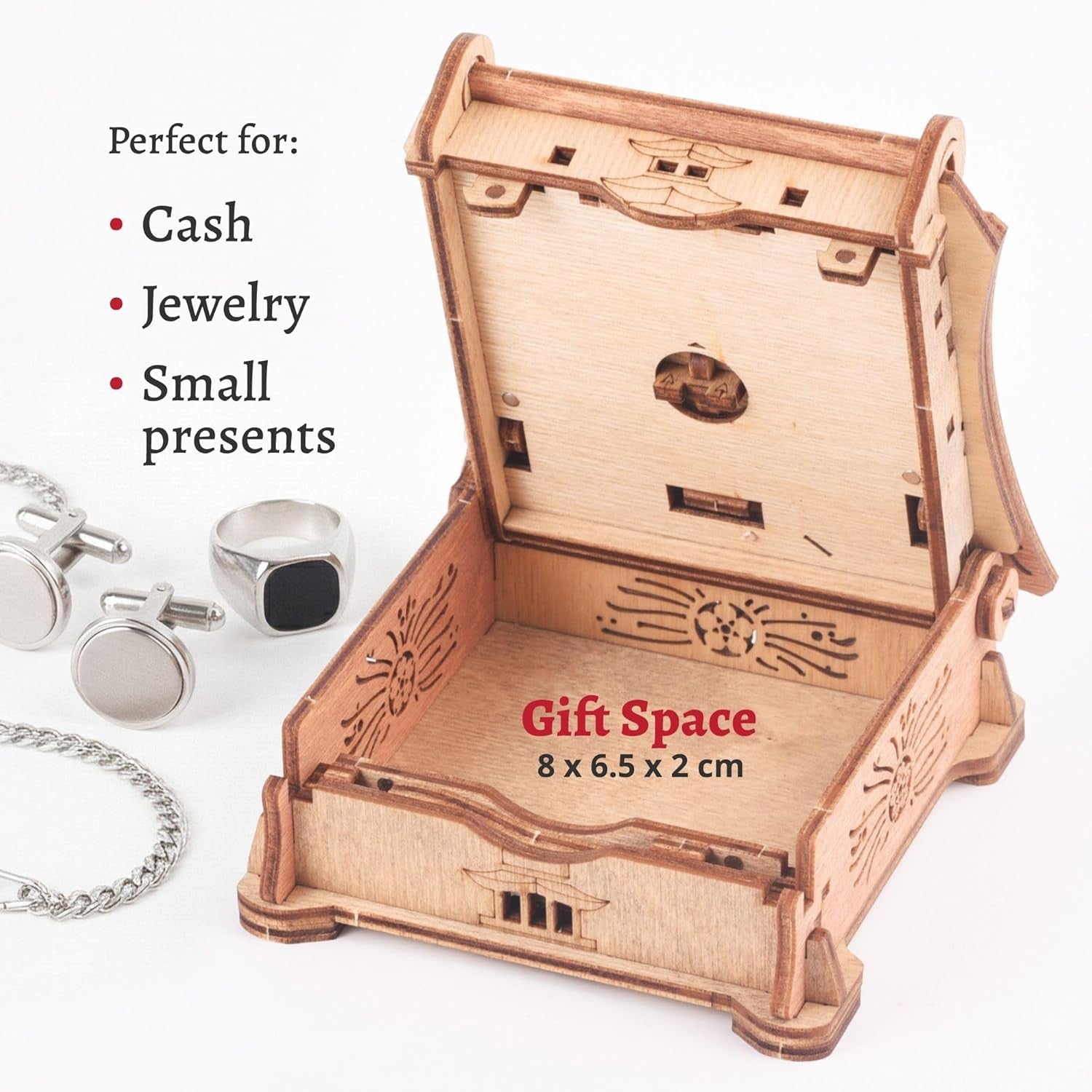 Samurai Box este alegerea perfectă pentru cei care vor să ofere un cadou într-un mod original, elegant și memorabil. Această cutie puzzle din lemn, cu design inspirat din estetica japoneză, ascunde un mecanism ingenios care transformă deschiderea într-o adevărată provocare de logică. Poate fi folosită atât ca ambalaj creativ pentru un mic dar, cât și ca spațiu elegant pentru păstrarea bijuteriilor, monedelor sau altor obiecte de preț.