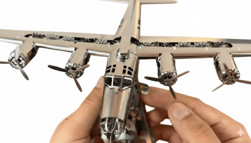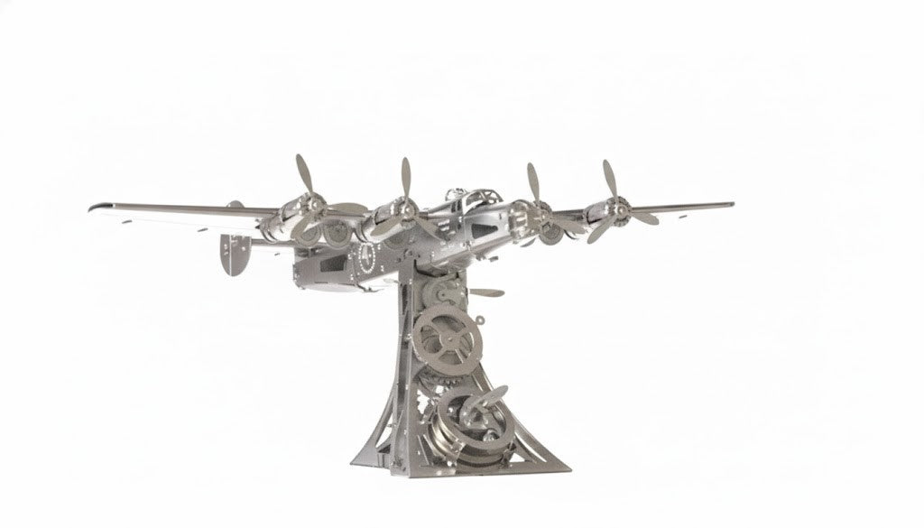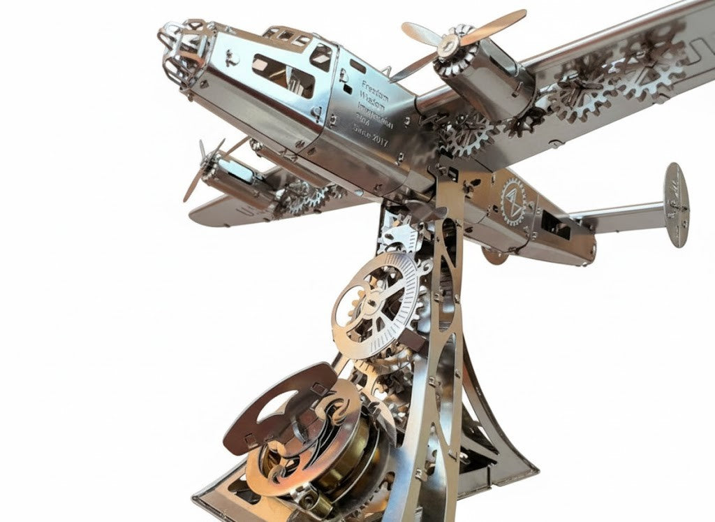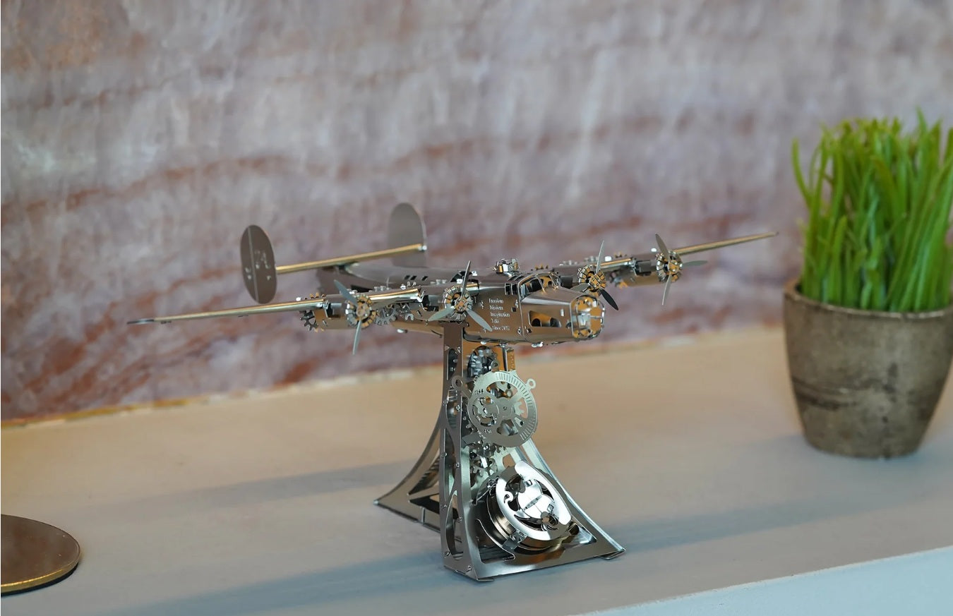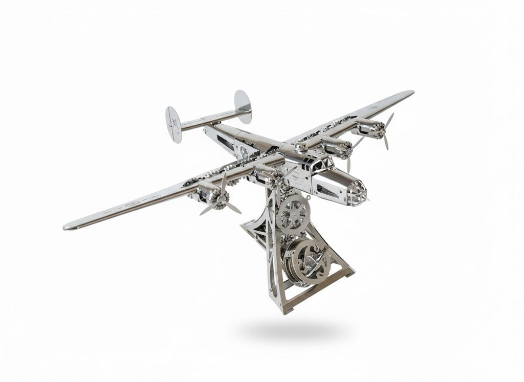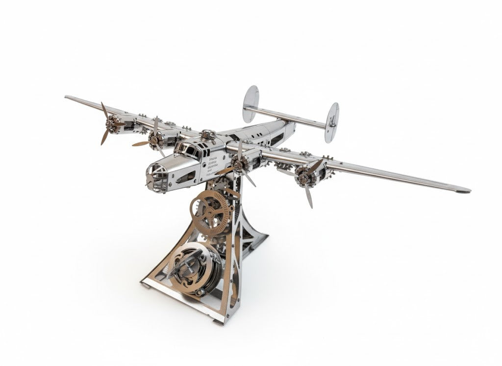 Modelul Mecanic B-24 Liberator este mai mult decât o simplă replică la scară — este o veritabilă operă de artă mecanică. Fiecare componentă este tăiată cu precizie, finisată impecabil și gândită pentru mișcare. Rezultatul este o sculptură funcțională care îmbină designul industrial cu istoria aeronautică.
